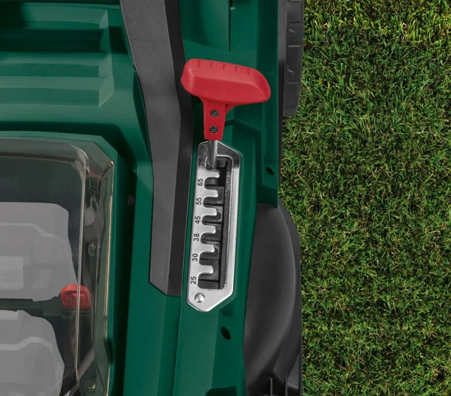 Легкий режим скошування після скошування, центральне 7-ступеневе регулювання висоти скошування з обох сторін, підживлення країв газону для чистого скошування близько до краю.