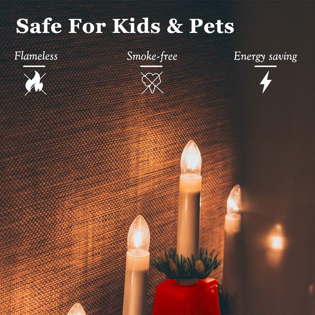 Безполум'яні електричні гірлянди із пластику: працюють від двох батарейок типу АА (батарейки в комплект не входять). Електричні свічки не горять і не димлять, тому ви можете використовувати їх без побоювань. Безпечні для сімей з домашніми тваринами та маленькими дітьми.