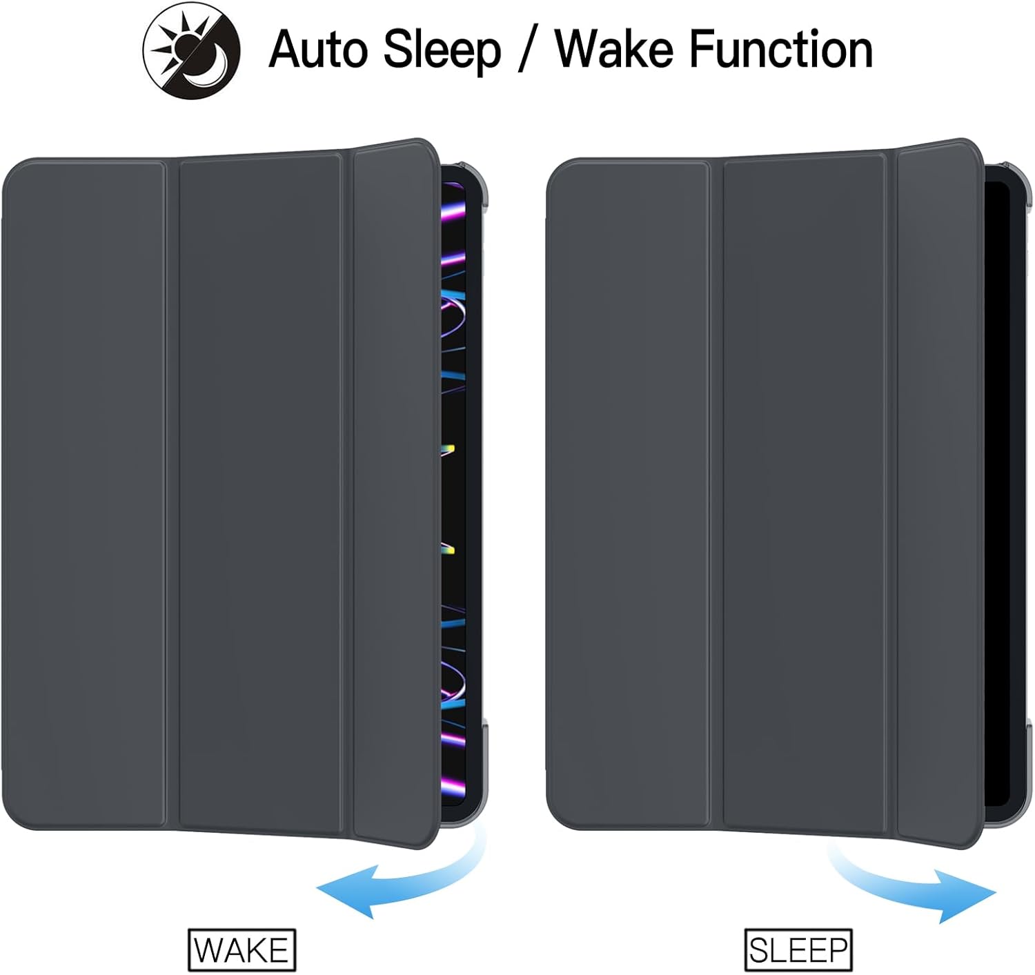 Магнітна смарт-обкладинка підтримує функцію автоматичного переходу в режим сну/пробудження. Передня кришка, що складається втричі, може підтримувати iPad у двох положеннях для перегляду та набору тексту