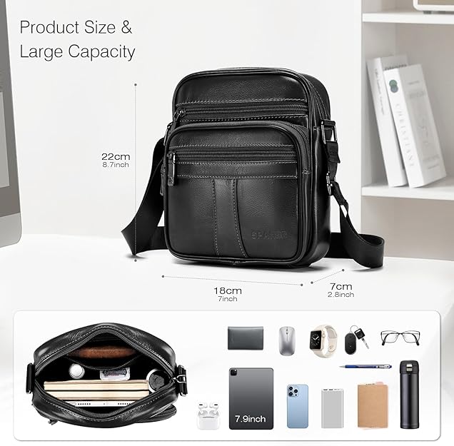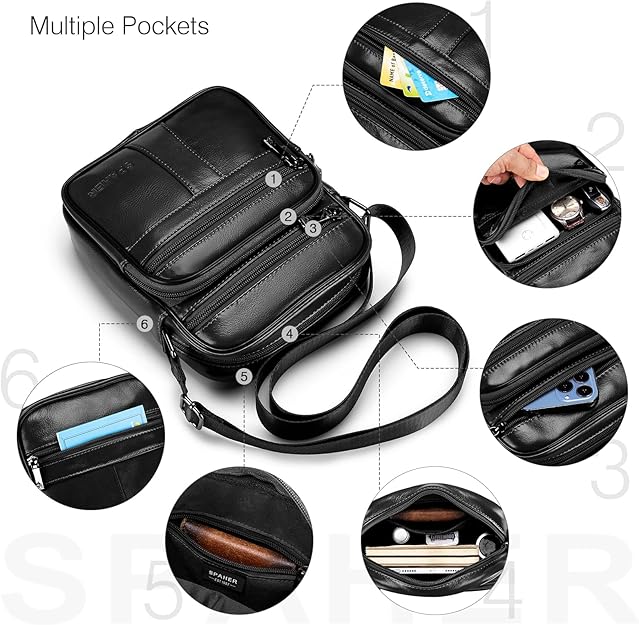 Маленька шкіряна сумка SPAHER виготовлена ​​із високоякісної, міцної натуральної шкіри. Товстіша і довговічніша.