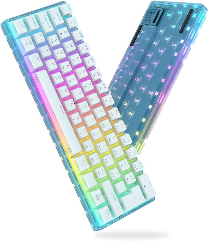 Ця механічна клавіатура на 60% має унікальний матовий злегка напівпрозорий нижній корпус і пудингові ковпачки. Ідеальний розмір для ділової поїздки, офісу та домашнього використання, а також забезпечує більше місця на робочому столі. Завдяки ергономічному дизайну користувач не буде відчувати втоми навіть після тривалого використання.