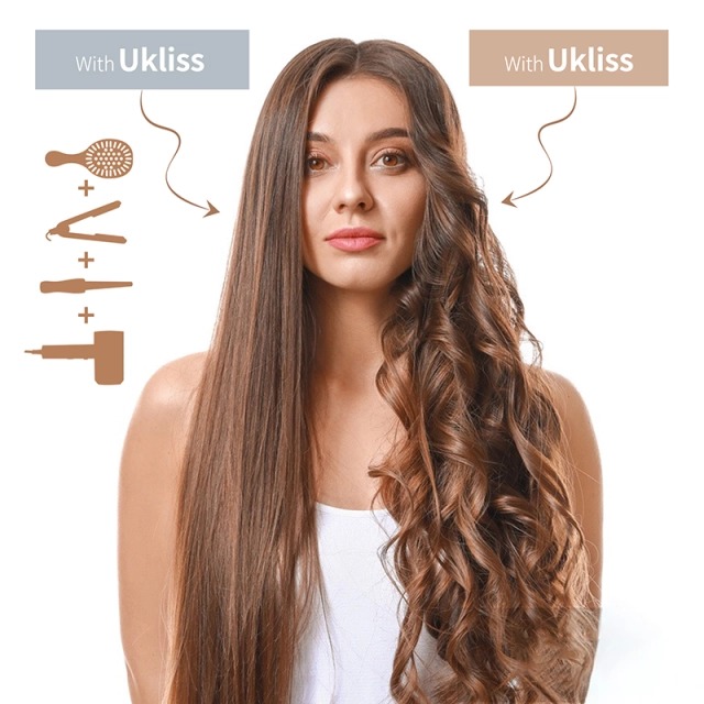 Фен-щітка Ukliss – це ідеальне поєднання фена, гребінця, випрямляча для волосся та масажного гребінця для швидкого сушіння та ідеальної укладки за один крок. Робить волосся об’ємним, здоровим, шовковистим і блискучим, що відрізняється від традиційної гарячої укладки, і полегшує доступ до косметичних засобів салонної якості.