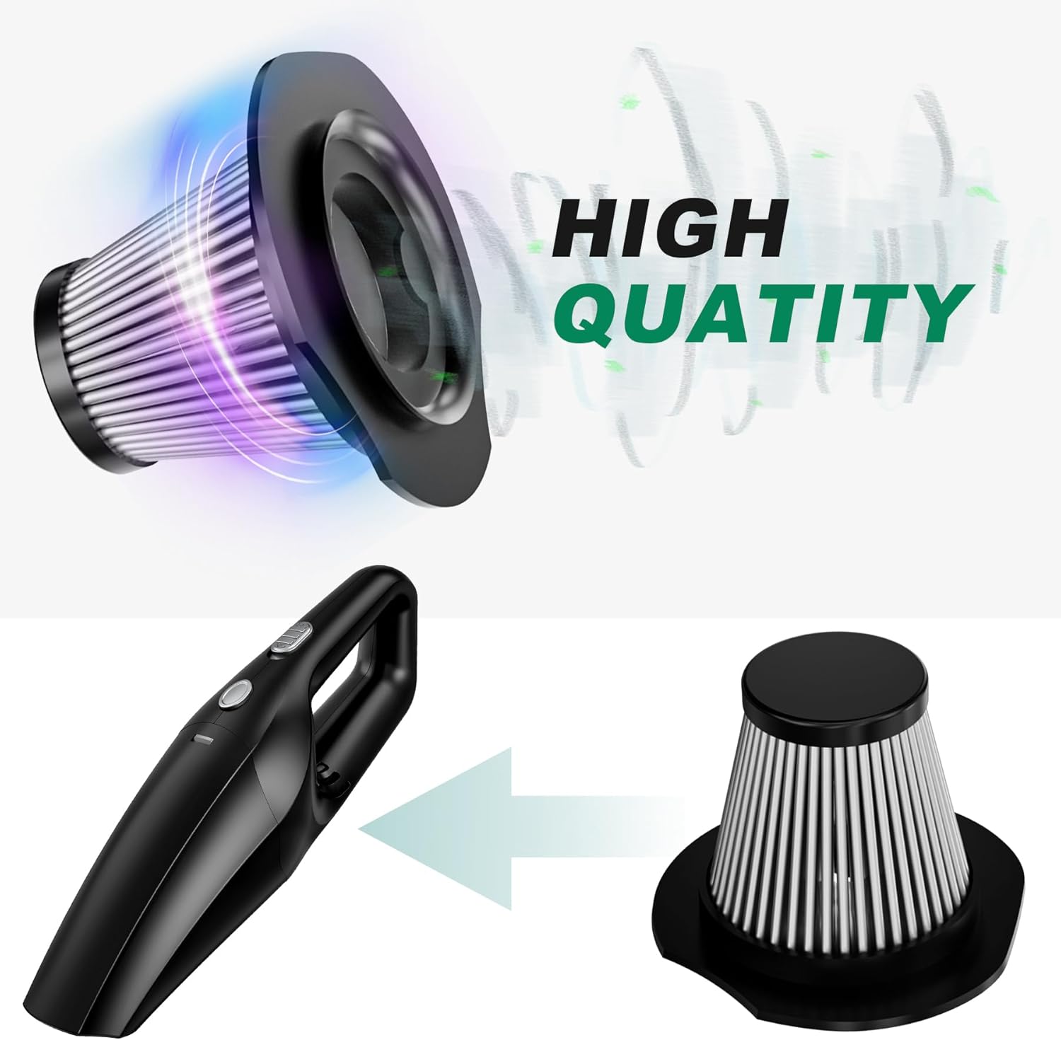 Фільтр для бездротових ручних пилососів. Використовується нержавіюча сталь, щоб гарантувати оптимальну фільтрацію. Завдяки високій щільності, матеріали затримують навіть дрібні частинки, забезпечуючи чисте і здорове довкілля. Крім того, вони збільшують потужність всмоктування та термін служби автомобільного пилососу.