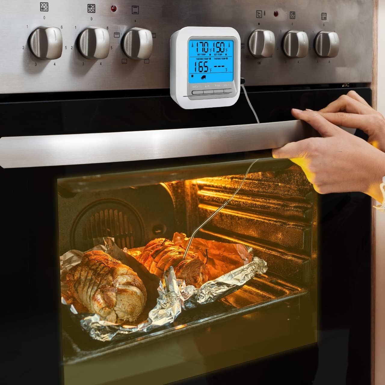 Розроблено з двома способами налаштування температури, включаючи ручну програму та попередньо встановлену температуру відповідно до рекомендацій USDA для курки, свинини, шинки, риби або яловичини різної готовності