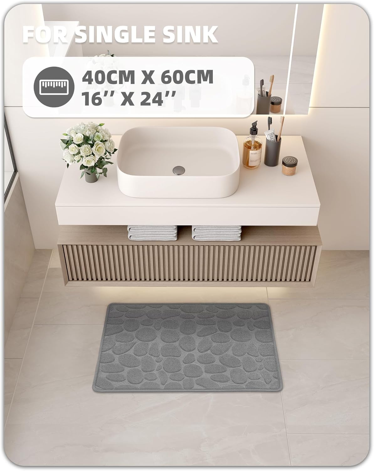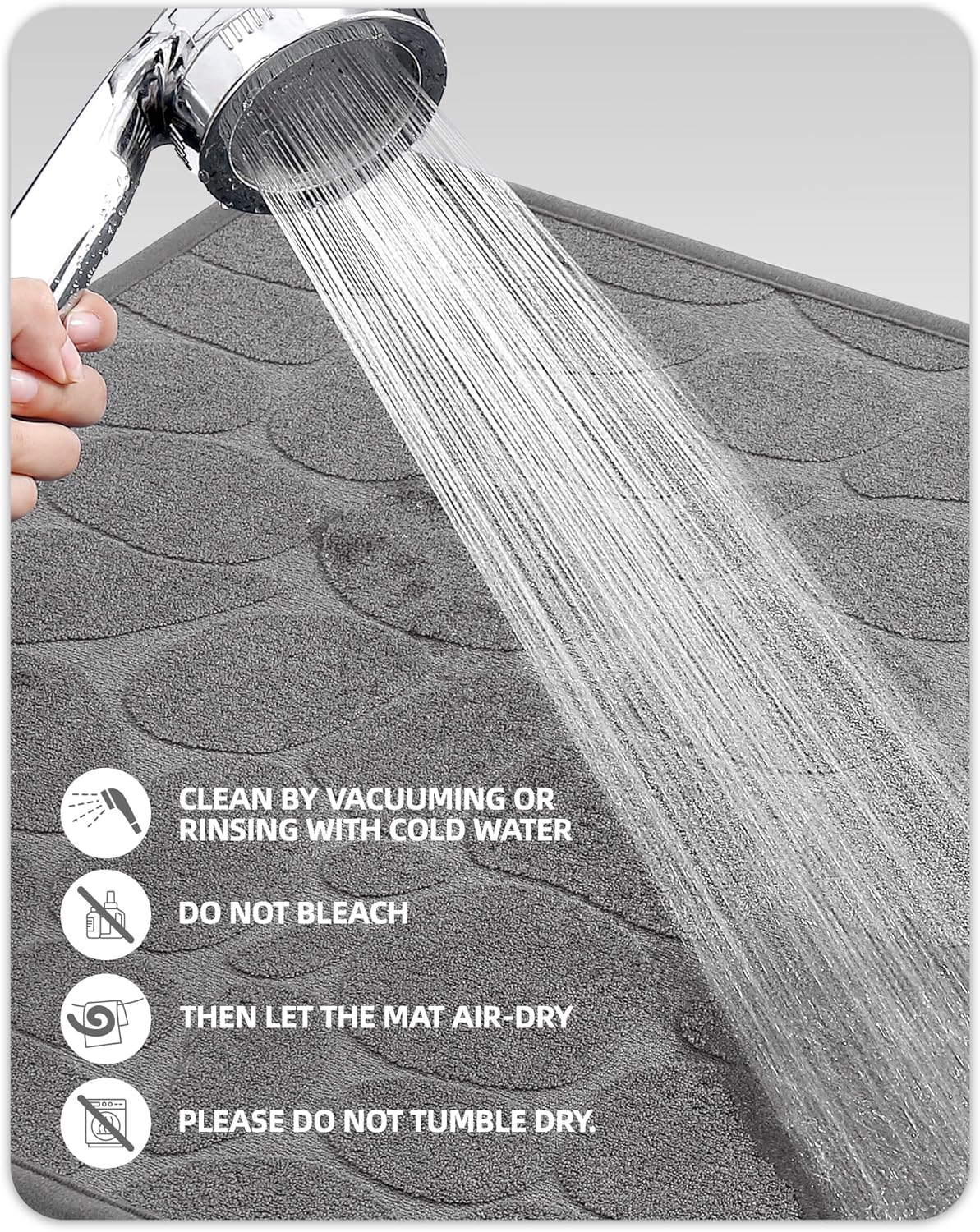 Цей килимок для ванної виготовлений з високоабсорбуючих матеріалів, які швидко вбирають воду, знижуючи ризик падіння при виході з душу або ванни, зберігаючи вашу ванну сухою і чистою після кожного використання.