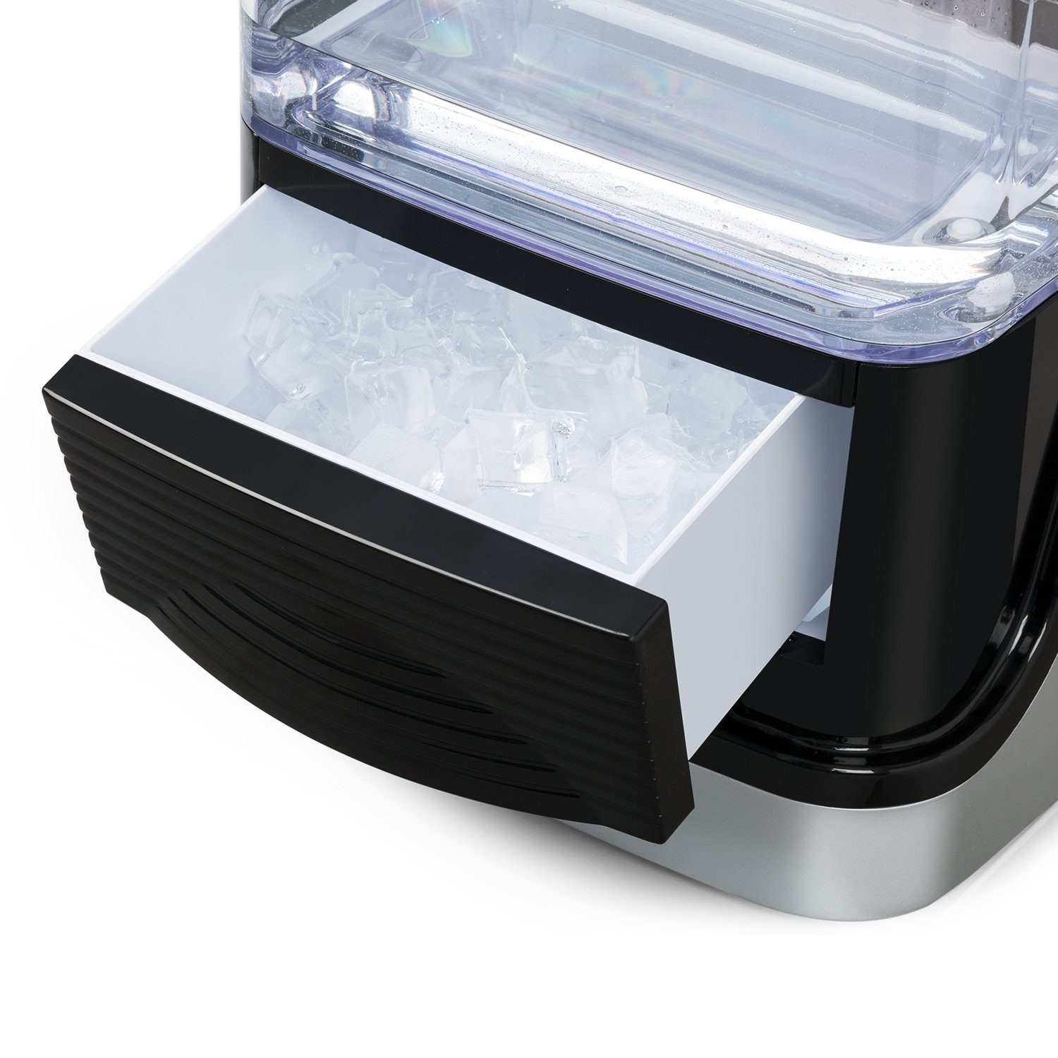 Він також дуже простий у використанні: льодогенератор можна швидко налаштувати за допомогою кількох кнопок. Висока продуктивність не обов’язково означає великий пристрій! Кришталево – прозорий льодогенератор Klarstein надзвичайно вузький і надзвичайно маленький, він поміщається на найменшому столі та в найменшому святковому підвалі.
