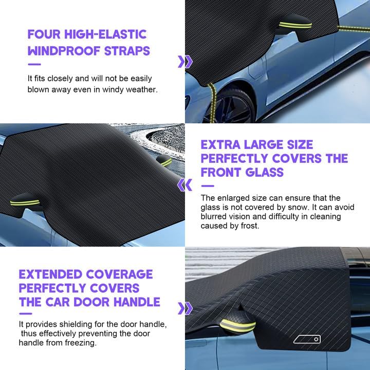 Матеріал: потовщена водонепроникна тканина Оксфорд 600D. Колір: чорний. Розмір: 270 см (Д) x 140 см (Ш) Пакет включає: 1 х накладка на лобове скло автомобіля 1 х сумка для зберігання