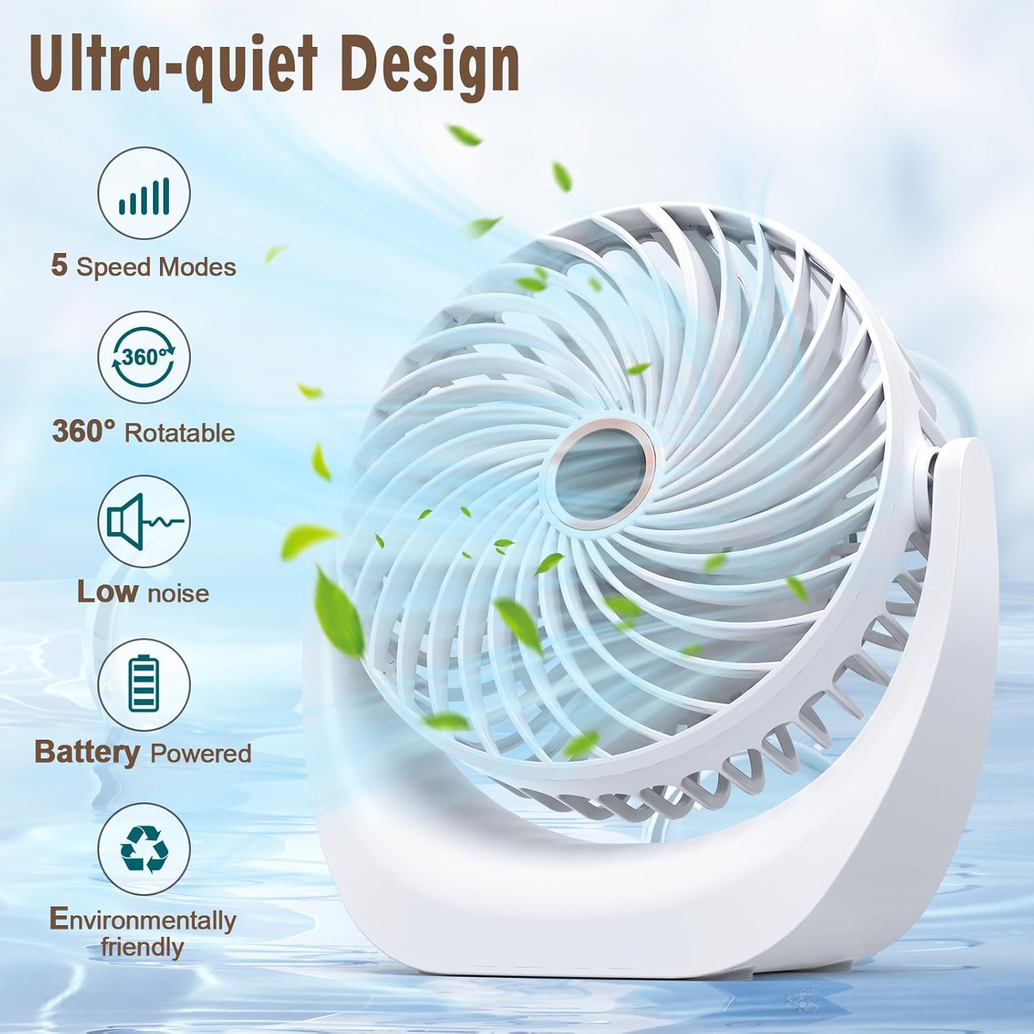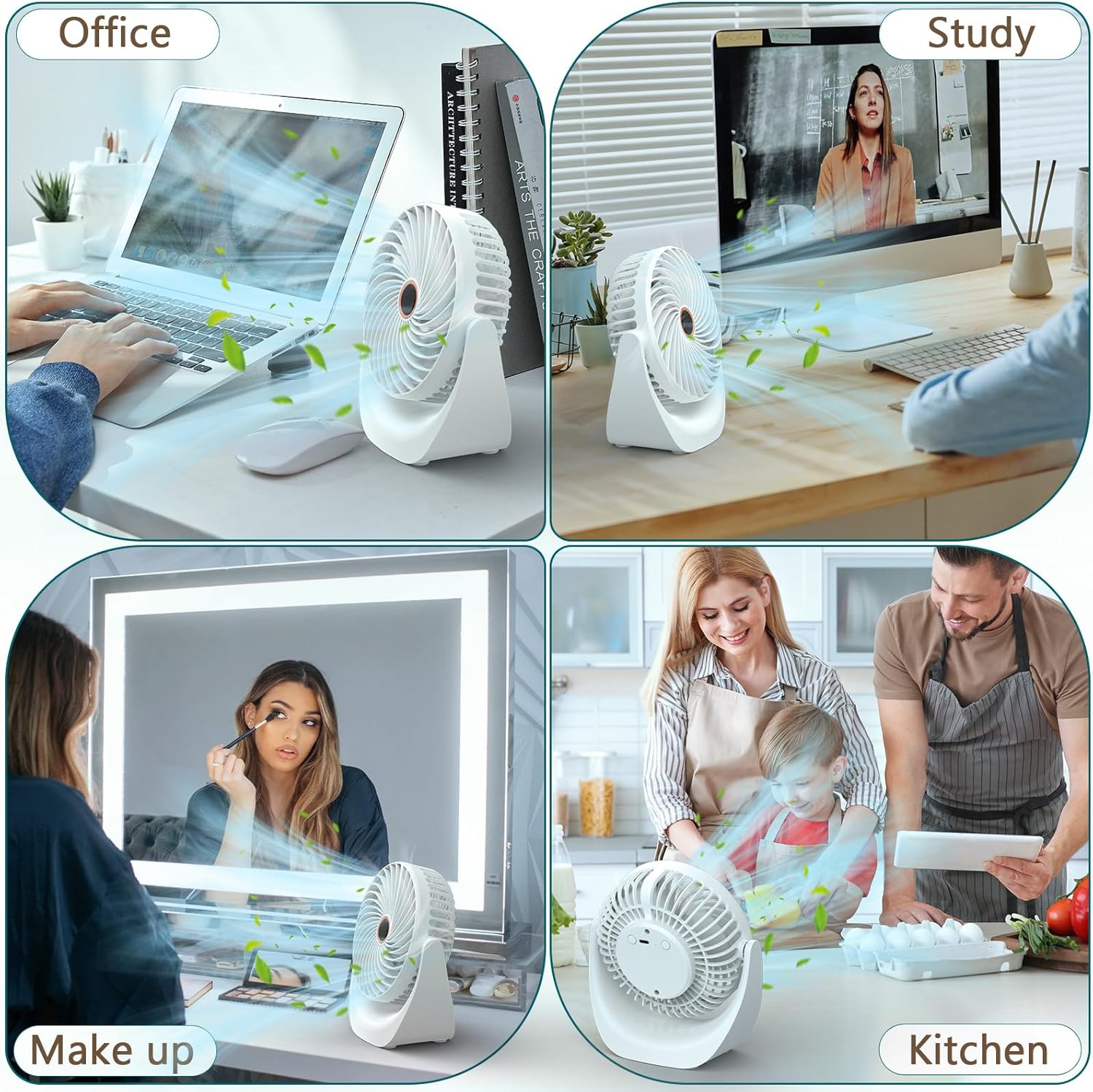 Регульований кут на 360 ° / Простота в управлінні: головку вентилятора можна регулювати від 0 до 360 градусів, щоб встановити кілька кутів для отримання улюбленого кута холодного повітря. Інтерфейс керування на задній кнопці перемикання та кнопці регулювання швидкості простий і зрозумілий. Кнопка "Все в одному": просто натисніть кнопку живлення, щоб змінити швидкість. Забезпечує хорошу циркуляцію повітря.