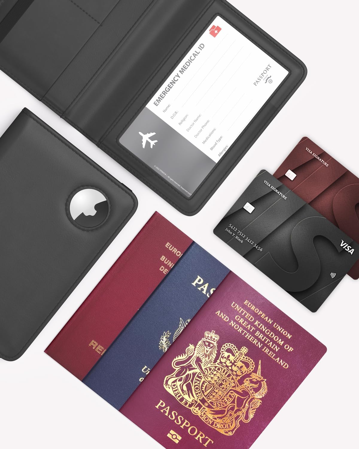 ідеальний супутник у подорожі для тих, хто хоче зберегти свої паспорти у безпеці. З цим інноваційним власником паспорта ви можете інтегрувати свій AirTag, щоб легко знайти свій паспорт за допомогою телефону. (Зверніть увагу, що AirTag не входить до комплекту постачання).
