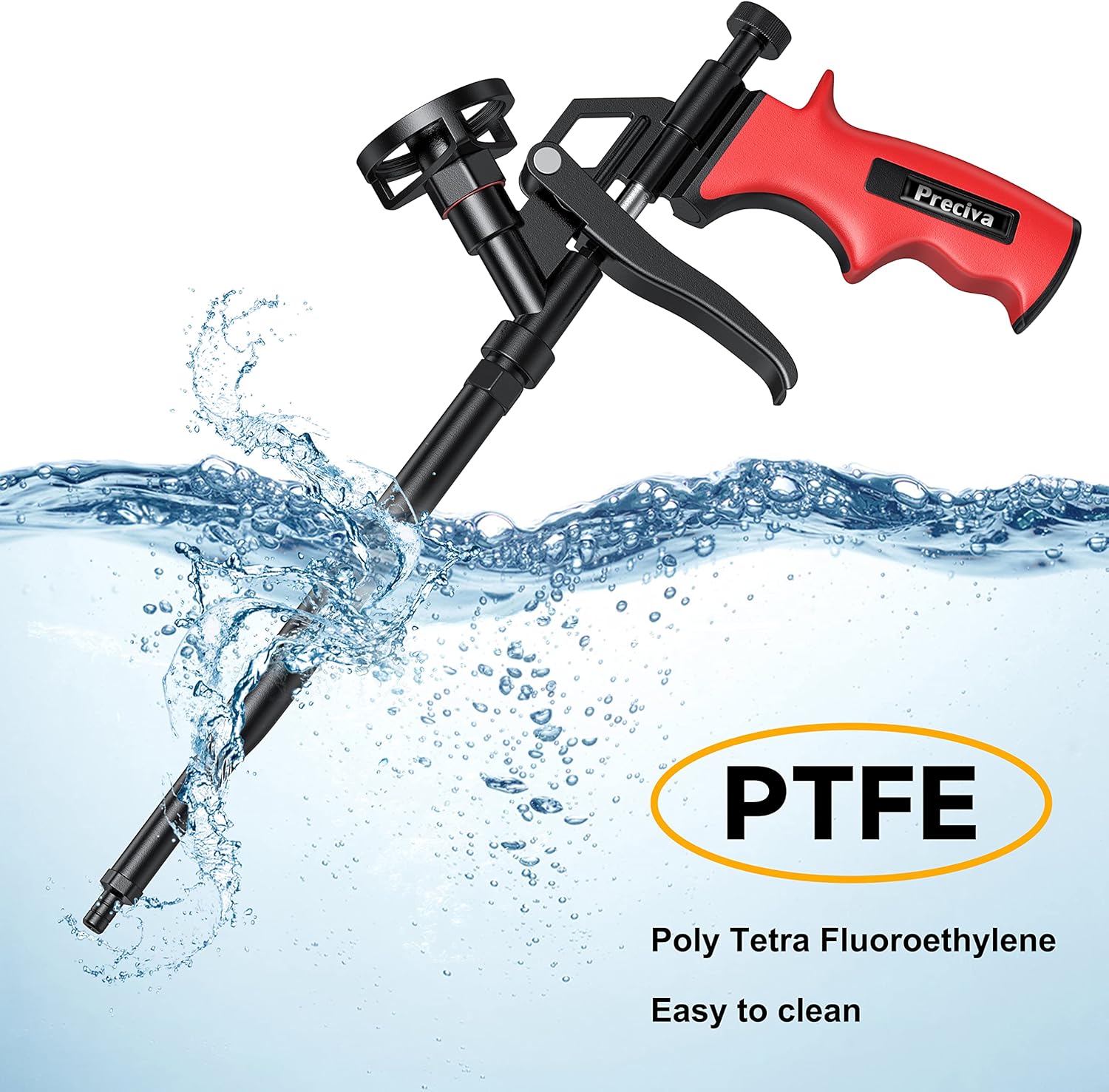 Пістолет виготовлений з перфторвуглецю, кошик з антипригарним покриттям, голка та кульовий клапан забезпечують безперешкодний потік піни. Підходить для балконних дверей та вікон, ванн та отворів для кондиціонерів. Ідеально підходить для заповнення, герметизації та ізоляції невеликих щілин.