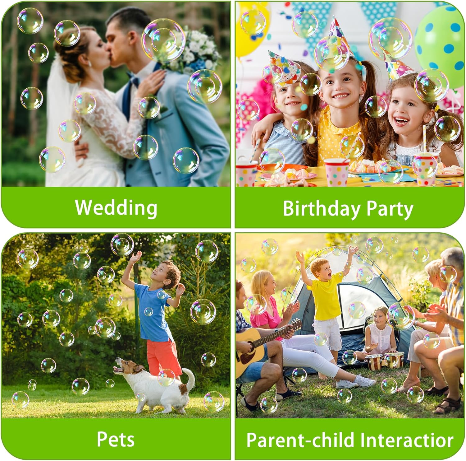 Машина для бульбашок з 2 швидкостями і потужним вбудованим двигуном може створювати 9000+ бульбашок на хвилину, вона може видувати тони кольорових бульбашок швидше, вище і далі навіть у приміщенні без вітру.