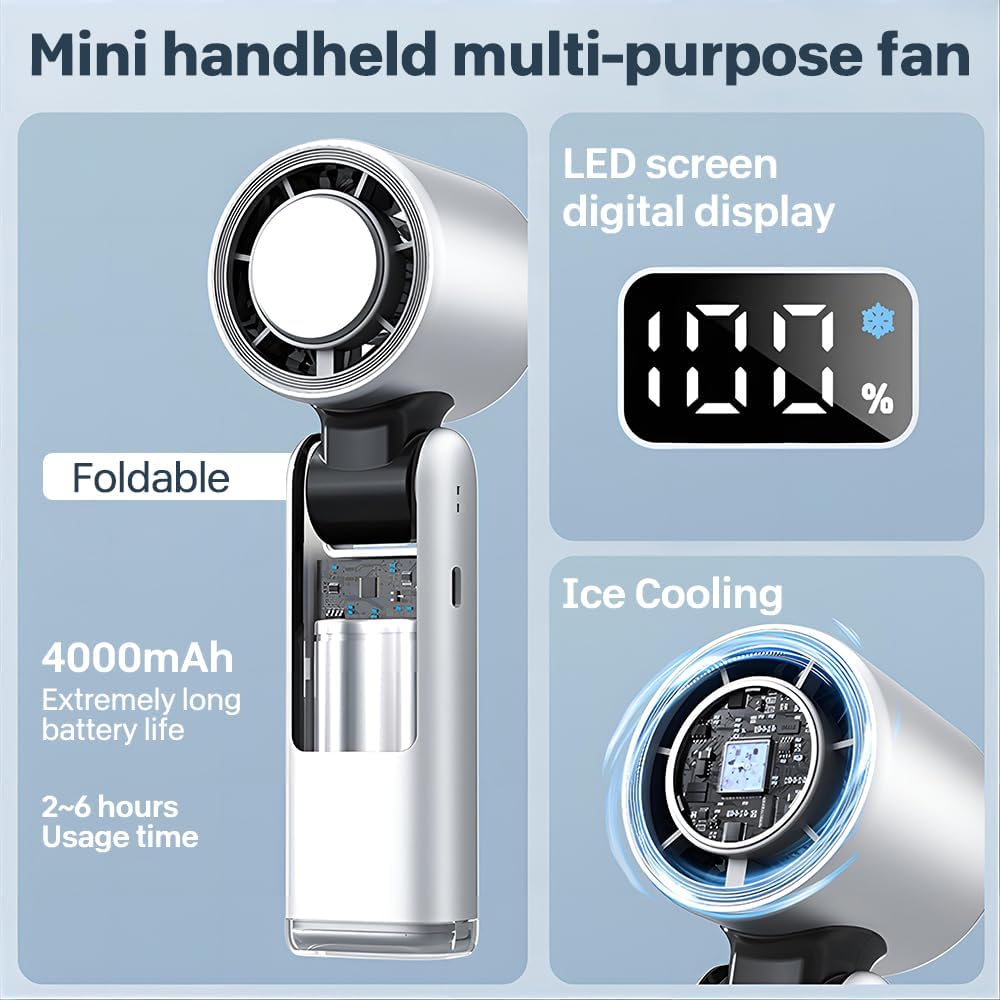Цей портативний ручний вентилятор використовує унікальну надпровідну систему охолодження на основі крижаного магніту, яка створює освіжаючий, прохолодний вітерець за кілька секунд після включення. Цей компактний вентилятор підходить для спекотних літніх днів, дозволяючи вам відчути свіжість, просто приклавши панель до обличчя або чола.