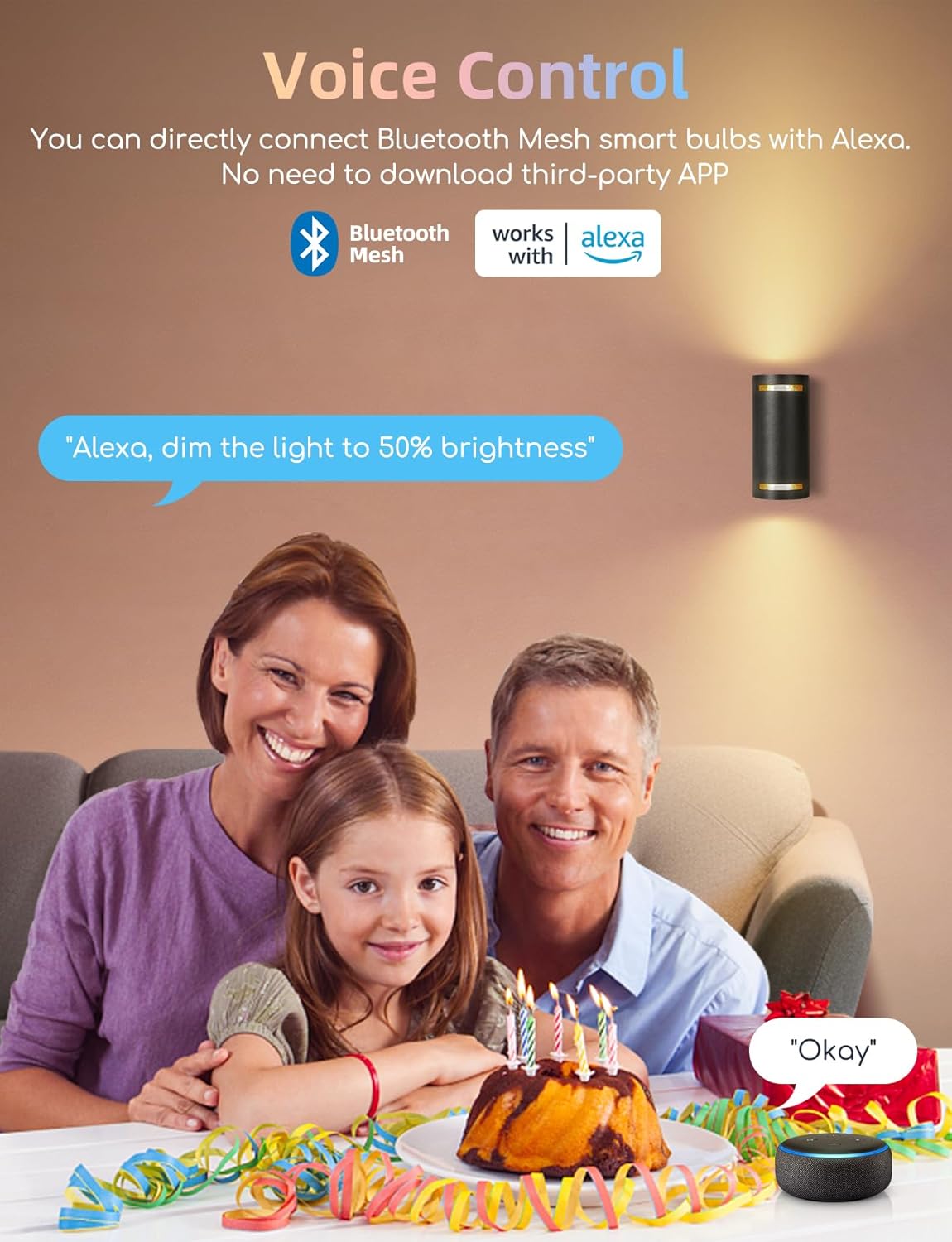 Оснащений чіпом Bluetooth Mesh 5.0, що дозволяє кільком пристроям взаємодіяти один з одним, дозволяючи керувати кількома лампочками для формування домашньої групи. Немає потреби в підключенні до Wi-Fi, стабільніша робота, вища швидкість, не впливає на швидкість домашньої мережі Wi-Fi. (Завдяки обладнаному шлюзу можна реалізувати подвійне одночасне використання Wi-Fi+Bluetooth через додаток Alexa/Google+Aigo для керування лампочкою).