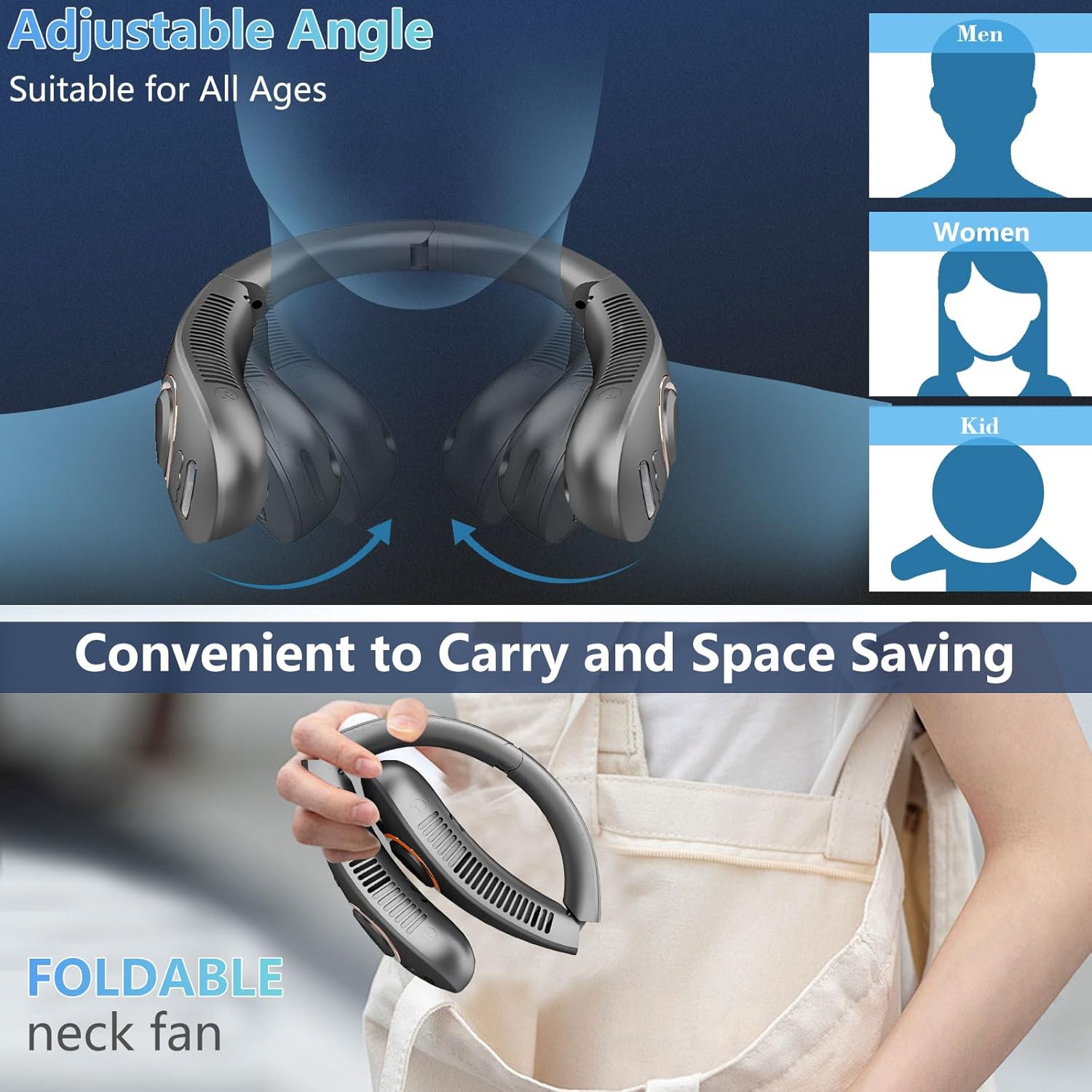 Складний, компактний та легкий, що підвищує зручність використання. Надзвичайно зручний для подорожей, активного відпочинку чи щоденного носіння. Подарує вам прохолоду, де б ви не знаходилися. Шийний вентилятор для навушників також підтримує регулювання кута нахилу, дозволяючи вибирати бажаний напрямок потоку повітря. Ви можете легко встановити найбільш зручний кут нахилу та насолоджуватися прохолодою. Підходить для будь-якого віку.