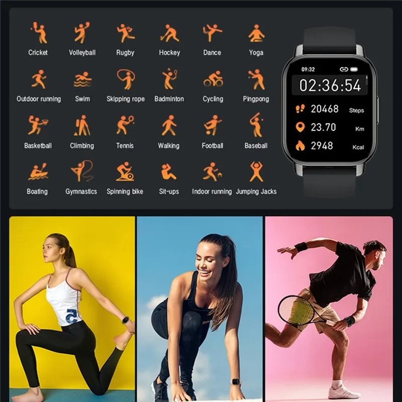 1,85-дюймовий великий кольоровий екран високої чіткості, вузькі рамки та комфортна роздільна здатність екрана надають вам інший візуальний досвід Використовуючи чіп Realtek 8763EW, незалежно від швидкості обробки графіки чи обчислень у багато разів вище, ніж у звичайного чіпа годинника Bluetooth Цілодобове визначення частоти серцевих скорочень, інфрачервоний моніторинг кисню в крові, науковий моніторинг сну тощо, здійснювати технологію моніторингу аналізу відстеження, науково керувати своїм здоровим життям Вбудовані 24 професійні спортивні режими, незалежно від того, чи це біг, їзда на велосипеді, скелелазіння, плавання тощо, він стежитиме за вашим прогресом, записуватиме спортивні дані в деталях, дасть вам чіткіше знати ваші спортивні результати У комплектацію входить: