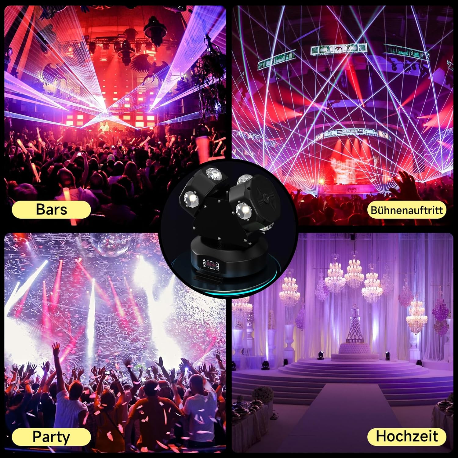 Широкий спектр застосування: чи хочете ви створити приголомшливе світлове шоу в нічному клубі або створити ідеальну атмосферу для романтичної весільної вечірки, наш прожектор, що обертається, легко адаптується до будь-якої обстановки. Він підходить для виступів діджеїв, караоке, бальних залів, караоке-клубів, театрів, церков, клубів, барів та особливих випадків.