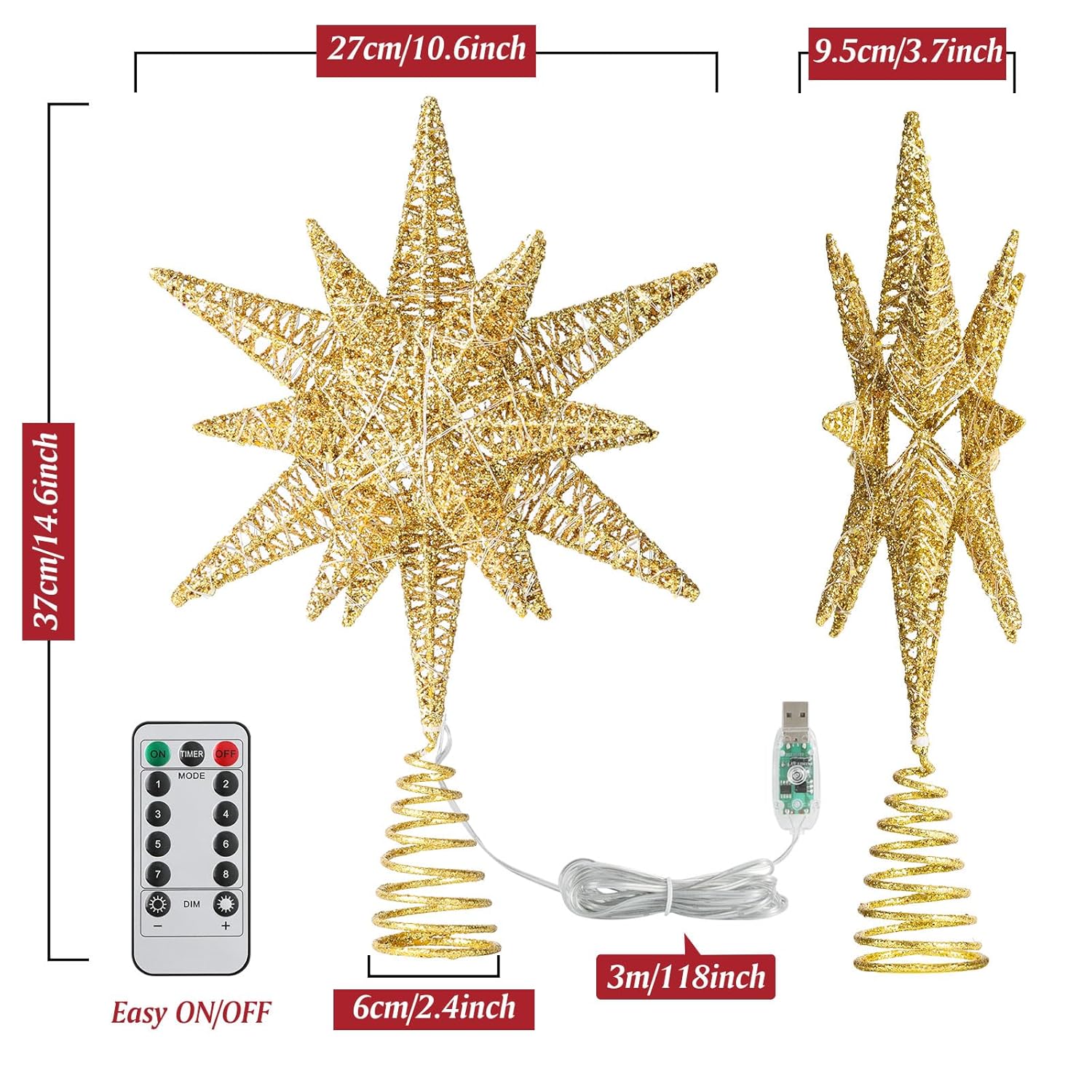 Світлодіодна прикраса на верхівку дерева у вигляді зірки, що працює від батарейок, блискуча прикраса для дому та вулиці, святковий подарунок на Різдво та святкову вечірку, золоте