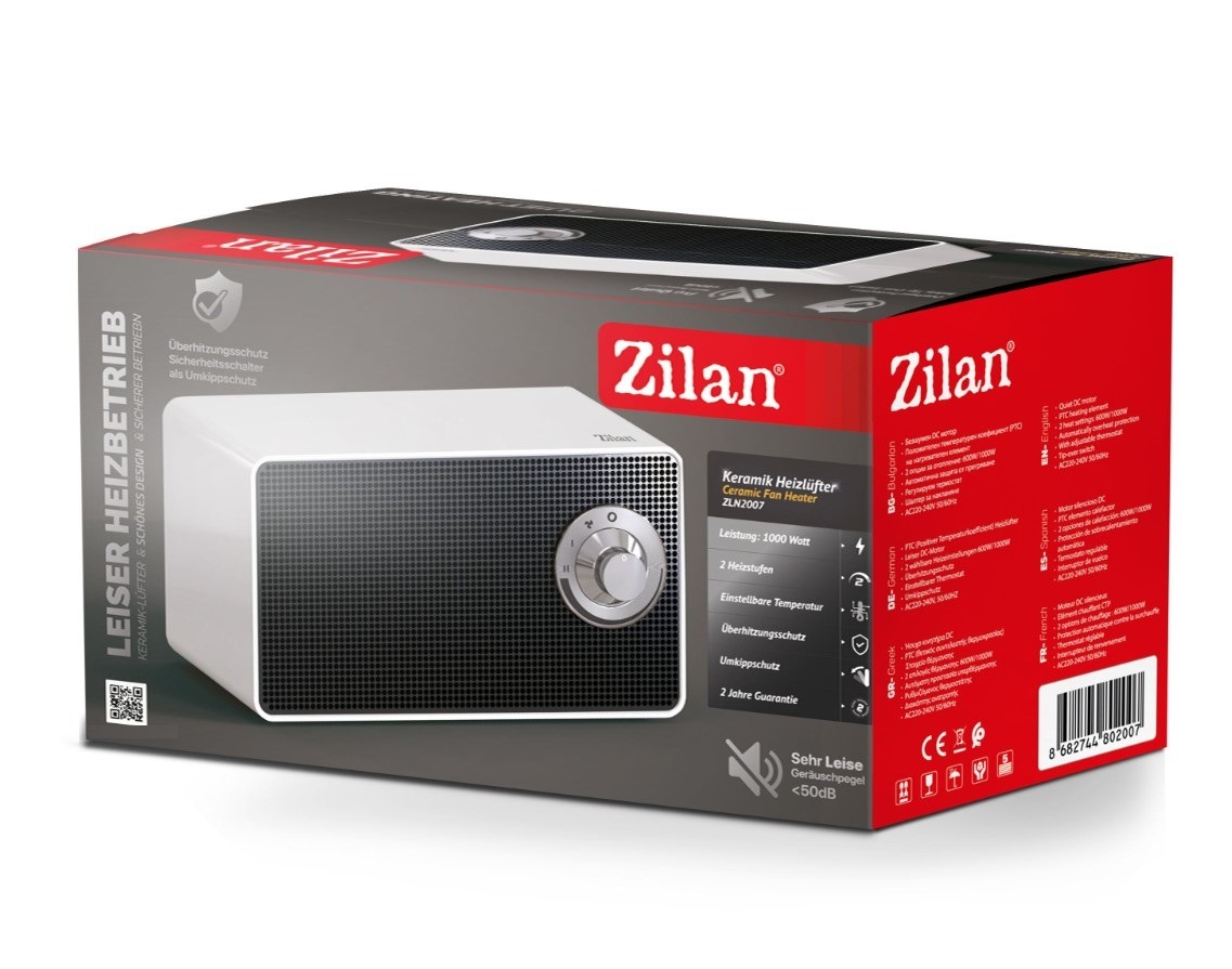Тепловентилятор керамічний ZILAN ZLN2007, 1000 Вт, 2 режима 600/1000 Вт