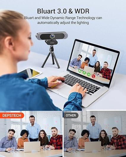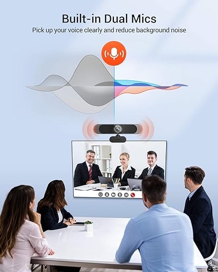 Вбудована веб-камера DEPSTECH 4k подвійний мікрофон, вона доступна для вловлення вашого голосу та автоматичного фільтрування фонового шуму, дозволяючи вам насолоджуватися чіткішим голосом для безпроблемного спілкування. Навіть у галасливому оточенні ви можете захопити потрібні звуки.